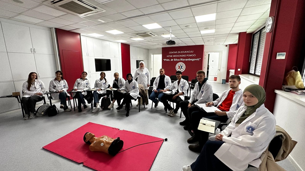 U utorak, 14. oktobra 2025. godine, studijski program Medicina (MED) na Fakultetu medicinskih nauka (FMS) IUS-a organizovao je terensku praktičnu nastavu iz Prve pomoći u saradnji sa Zavodom za hitnu medicinsku pomoć Kantona Sarajevo. Aktivnost je imala za cilj da studentima omogući upoznavanje s principima kliničke spremnosti i izgradnju samopouzdanja u reagovanju u hitnim situacijama, u okviru predmeta First Aid koji vodi dr. Safija Softić-Namas, stručni saradnik na FMS-u.