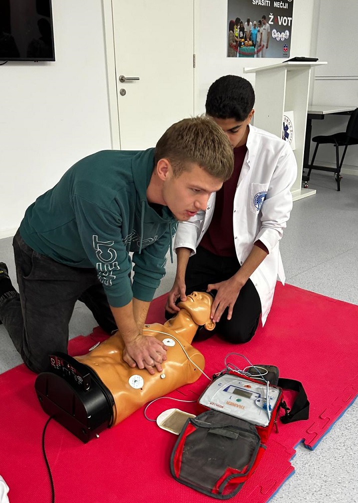 Tokom praktične nastave, studenti su imali priliku da se upoznaju s procedurama iz stvarnih situacija, uključujući procjenu stanja pacijenta, sigurnost na mjestu događaja, upravljanje disajnim putevima, zaustavljanje krvarenja i principe sigurnog transporta pacijenata. Radionica je uspješno povezala teorijska znanja iz predavanja s praktičnim, nadziranim treningom usmjerenim na razvoj konkretnih vještina.